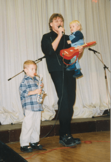 Vater Karl-Heinz mit Tobias und Jonas beim Weihnachtskonzert 2000